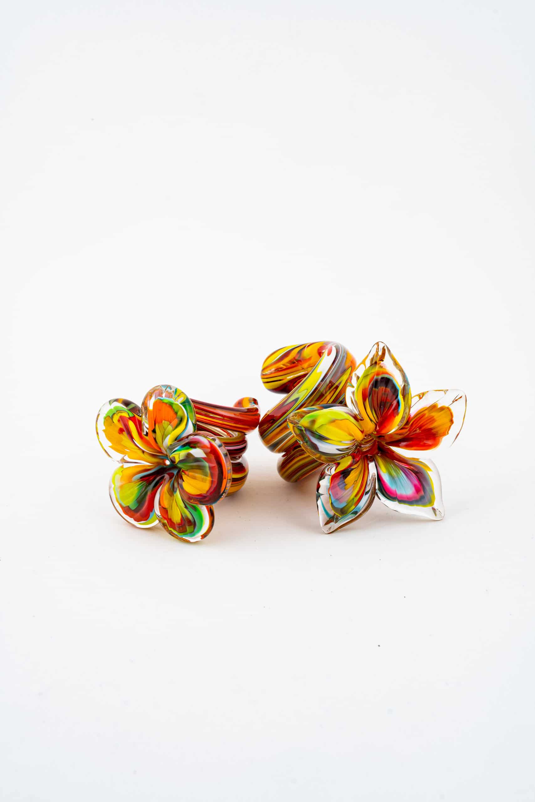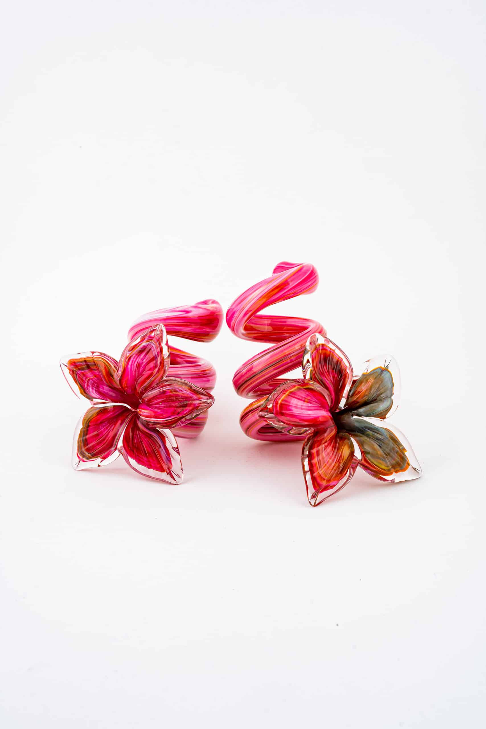 Bring artistry to your dining experience with our hand blown glass flower napkin holders. Crafted by skilled artisans, each holder features a delicate flower design with intricate swirling accents, making it a stunning addition to any table setting. Available in five enchanting styles — purple and white, teal, orange and white, red and black, rainbow and teal, pink and white — these glass napkin holders offer a vibrant touch to any table setting.